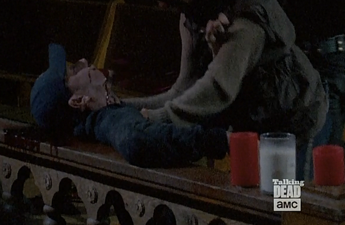 Moments after Mika’s death, Carol stabs her in the head to prevent reanimation.