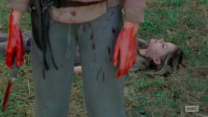 Lizzie, in an attempt to prove to Carol and Tyreese that walkers aren’t different than people, kills Mika. Carol and Tyreese return to find Mika’s corpse and Lizzie covered in blood.