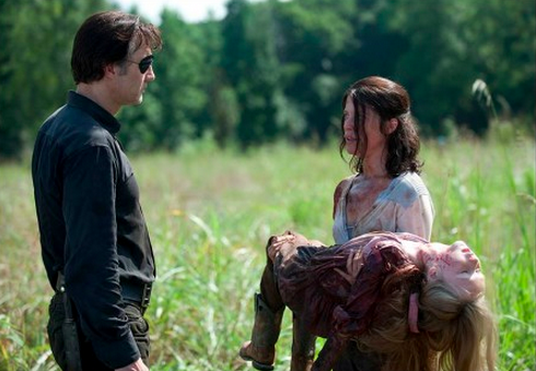 Andrea continued to hold Amy’s body, apologizing to her for not being there for her and when a reanimated Amy woke up, she tried to attack Andrea. Andrea apologized a final time and shot her in the head.