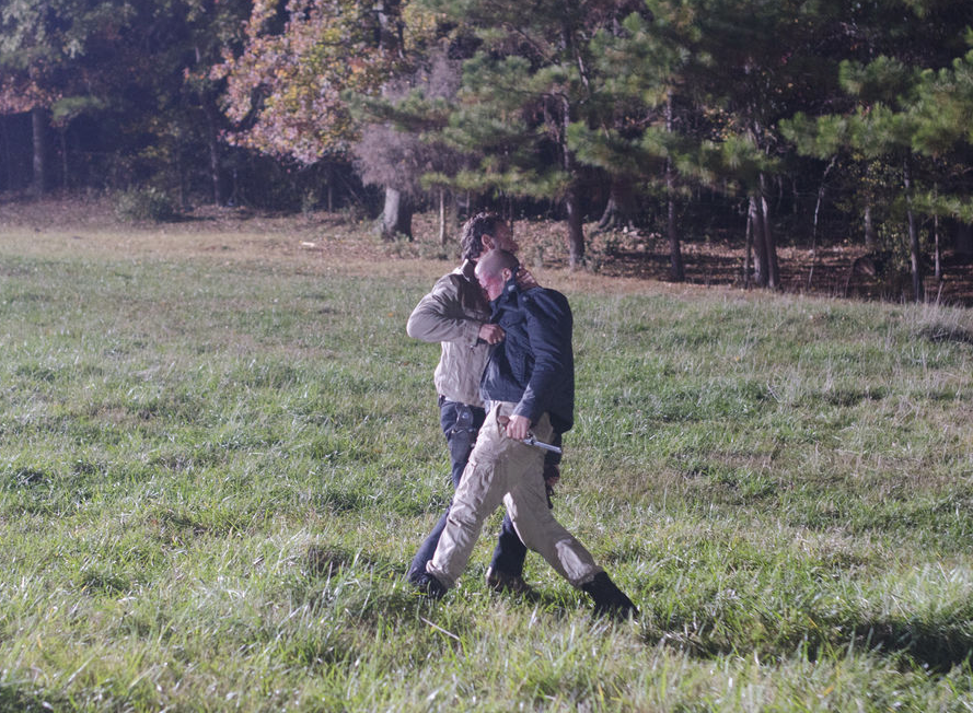 Shane lures Rick out to a field in the middle of the forest by pretending to look for an escaped Randall, however Rick realizes Shane’s story and comes to the conclusion that Shane brought him out there to kill him. Rick makes it seem as though he’s handing Shane his weapon, as he refused to be armed. Once his gun is in Shane’s hand, Rick pulls out his knife and stabs Shane in the chest, saying he brought this on himself. Shane then dies.